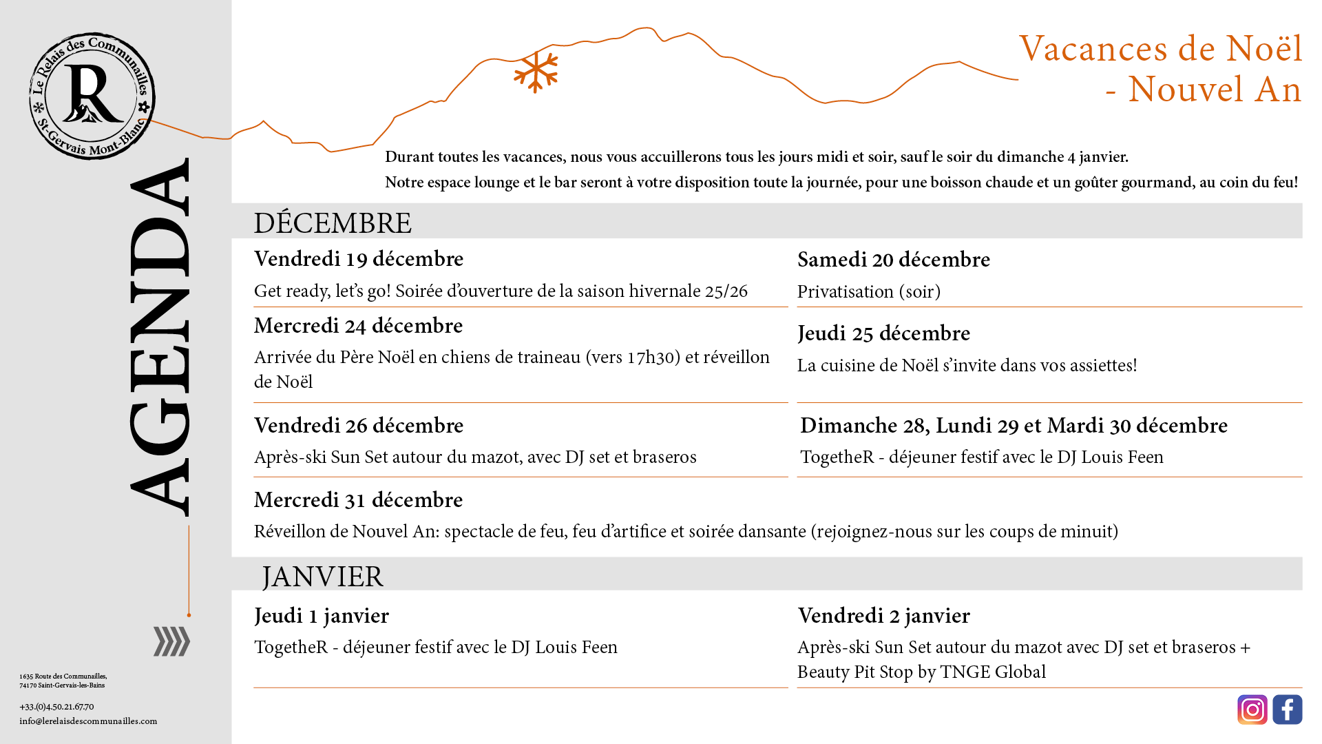 Bien plus qu’un restaurant, Le Relais des Communailles est né d’une vision: créer un lieu de vie où les épicuriens se rassemblent pour vivre des moments de partage et de convivialité, en profitant d’un panorama unique face au Mont-Blanc. Autour d’un verre, d’un bon repas, en famille ou entre amis, pour un événement privé, sportif ou culturel, les occasions seront multiples pour passer du bon temps au Relais des Communailles.